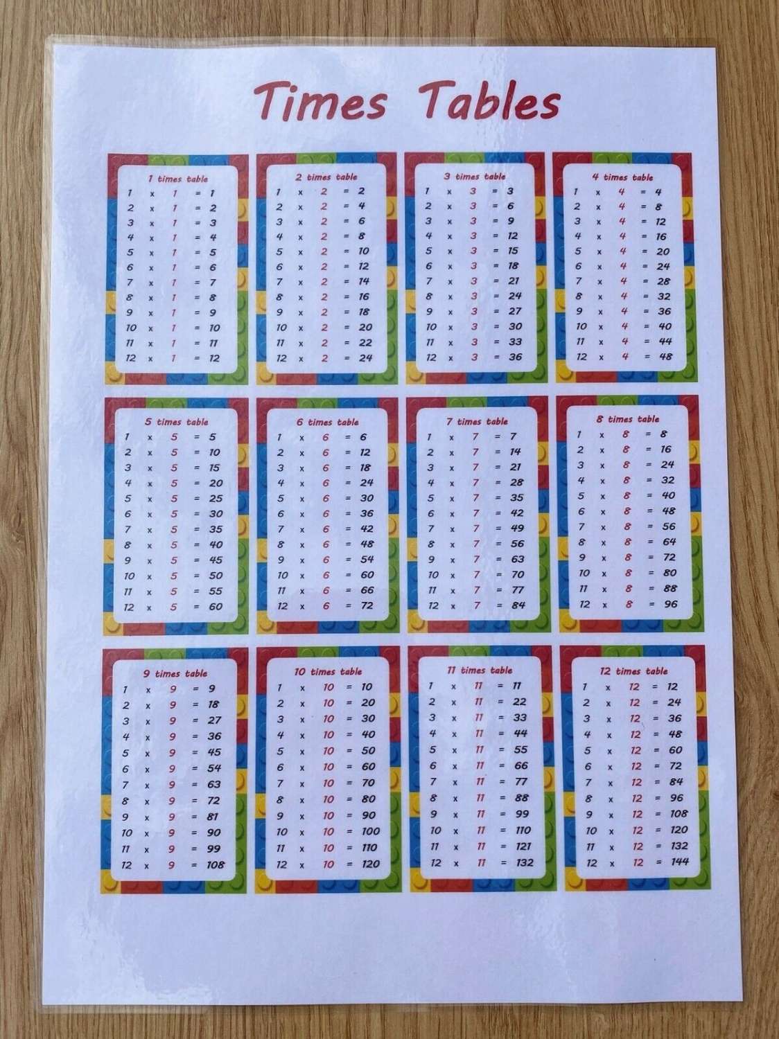 Times Tables A4 Size Poster Ea…